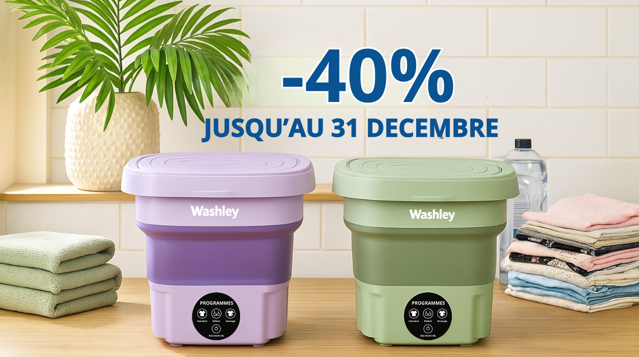 Marre de la laverie chère et des machines encombrantes ? Washley™ se plie en un clin d’œil et lance un cycle en 10 minutes. Gagnez du temps, de l’espace et économisez jusqu’à 70% d’eau !